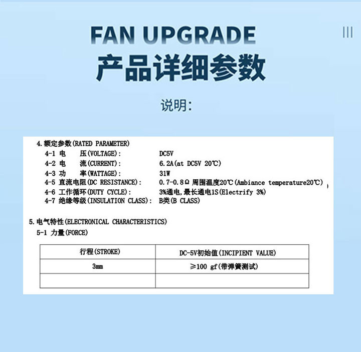 | 電壓: | DC5V | 行程: | 電阻: | 0.7~0.8 | 功率: | 31W | |