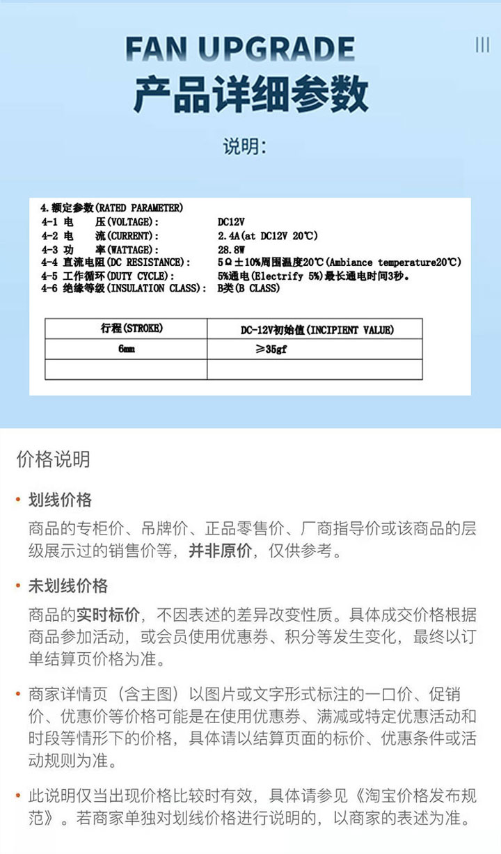 | 電壓: | DC12V | 行程: | 6MM | 電阻: | 5歐 | 功率: | 28.8W |