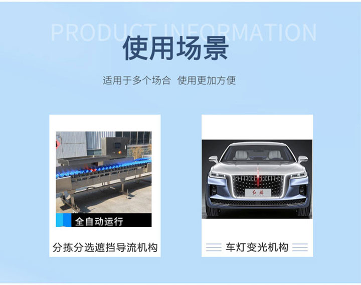 應(yīng)用:分揀分選遮擋導(dǎo)流機(jī)構(gòu)、車(chē)燈變光機(jī)構(gòu)
